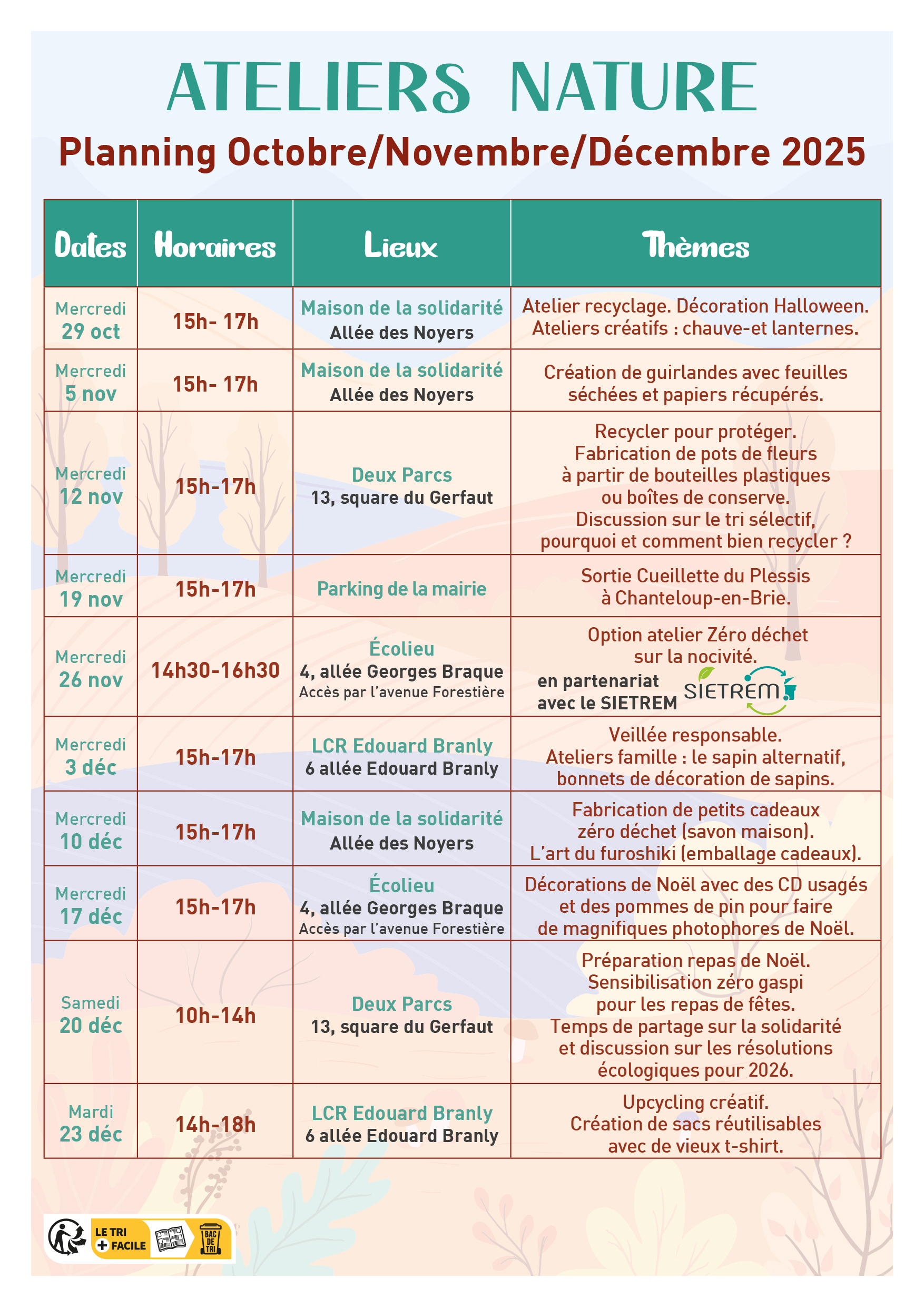 Inscriptions : service municipal Citoyenneté au 01 64 73 48 53 - Animatrice espaces verts au 06 71 75 25 11