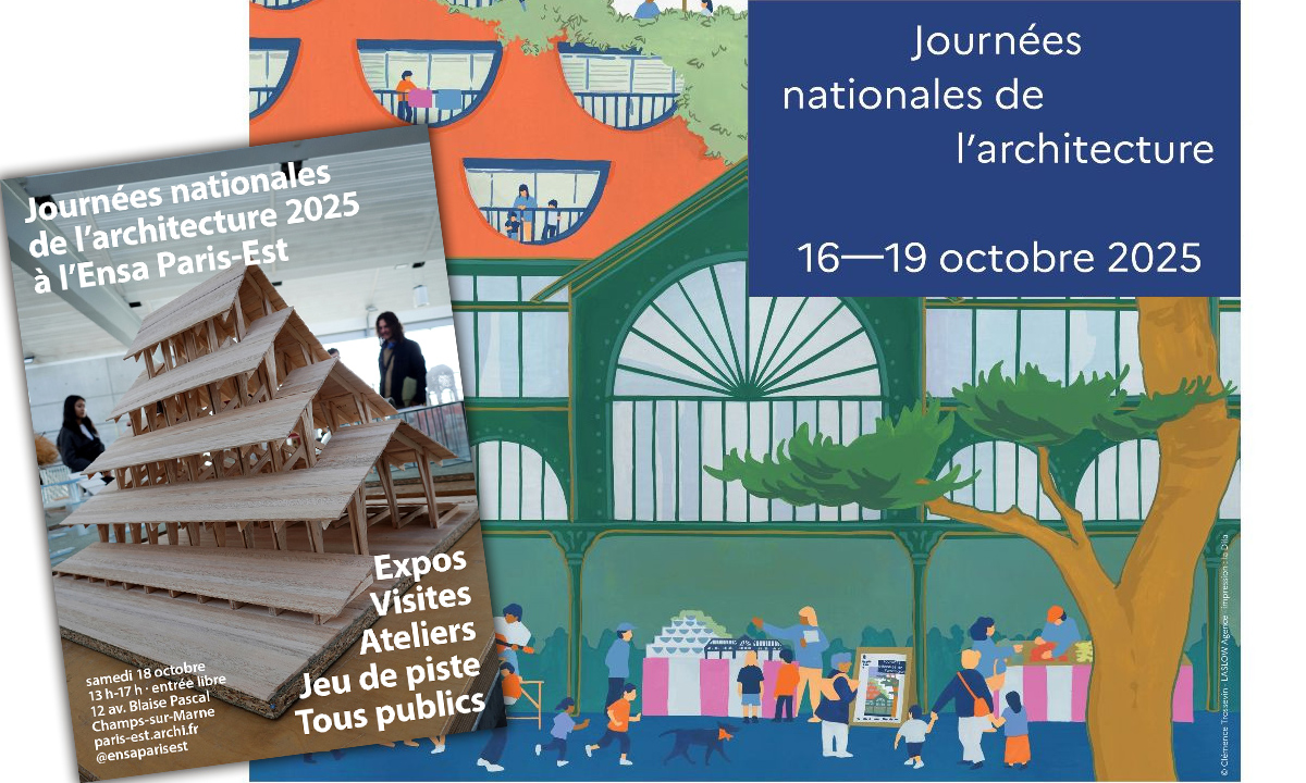 Chaque année, L'ENSA Paris-est, école d'architecture située à Champs-sur-Marne, sur le campus de la Cité Descartes, ouvre ses portes à l’occasion des Journées nationales de l’architecture avec une programmation variée d’ateliers, de visites guidées, d’activités et d’expositions à destination du grand public. Cette année, la thématique « Architectures du quotidien » met l’accent sur les réalisations souvent perçues comme banales, mais qui façonnent pourtant notre quotidien et le cadre de vie de chacun.